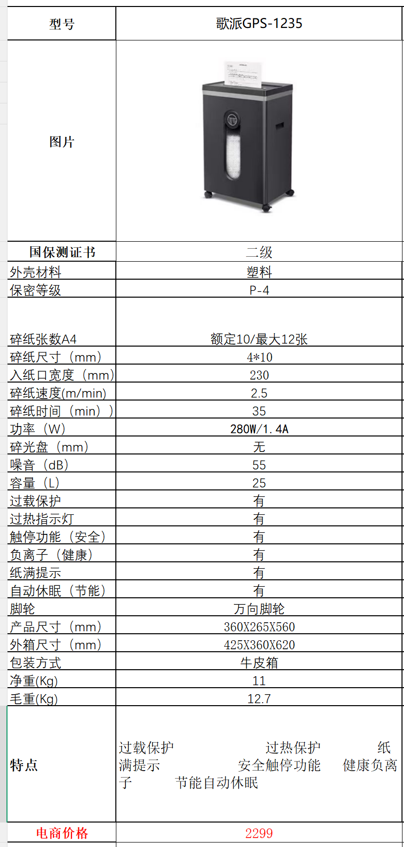 产品价格: 2299.00