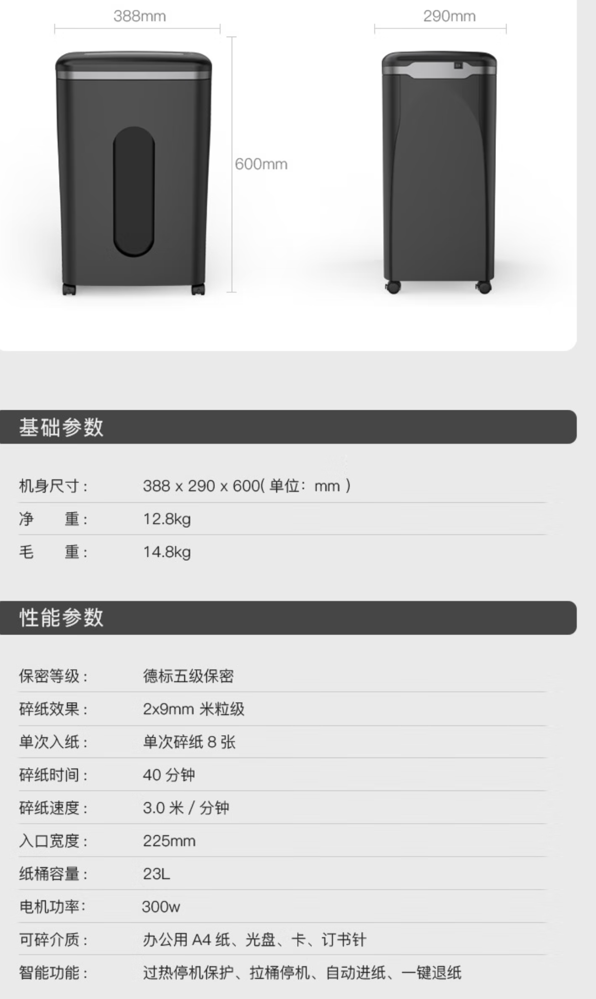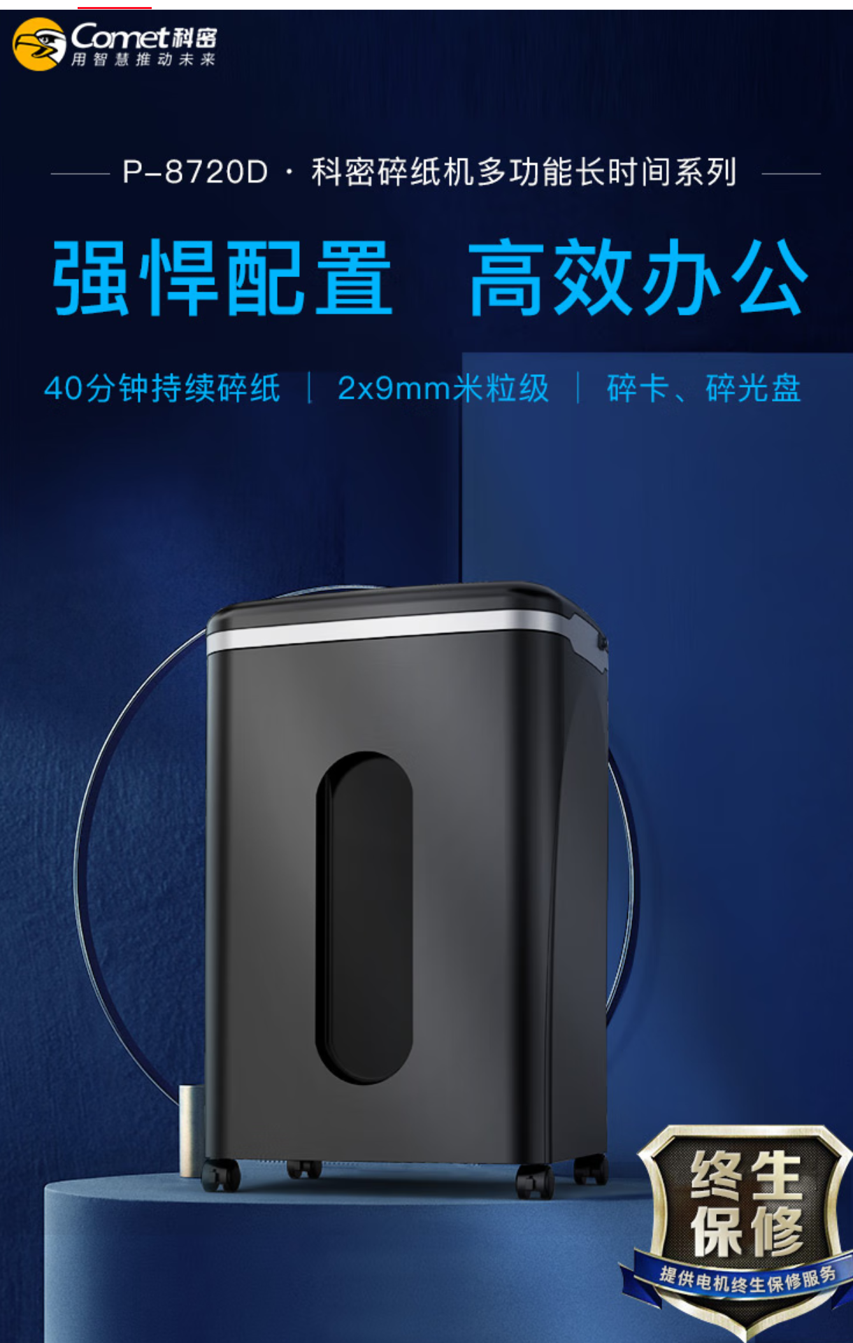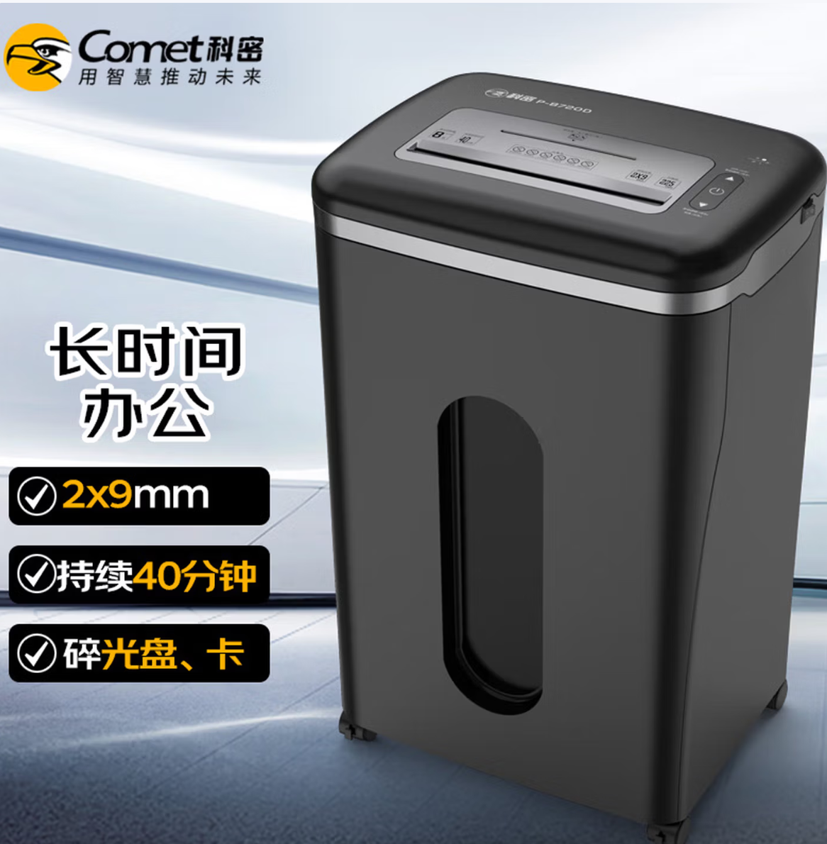 科密科密P-8720D 5级保密办公商用碎纸机单次8张23L碎卡光盘订书针