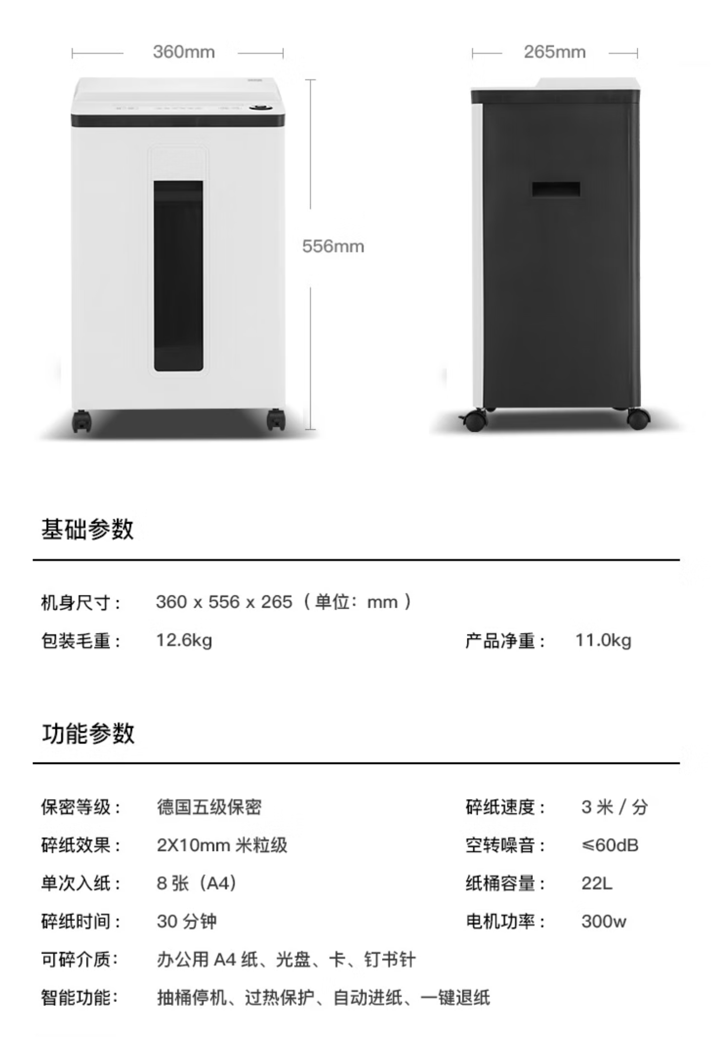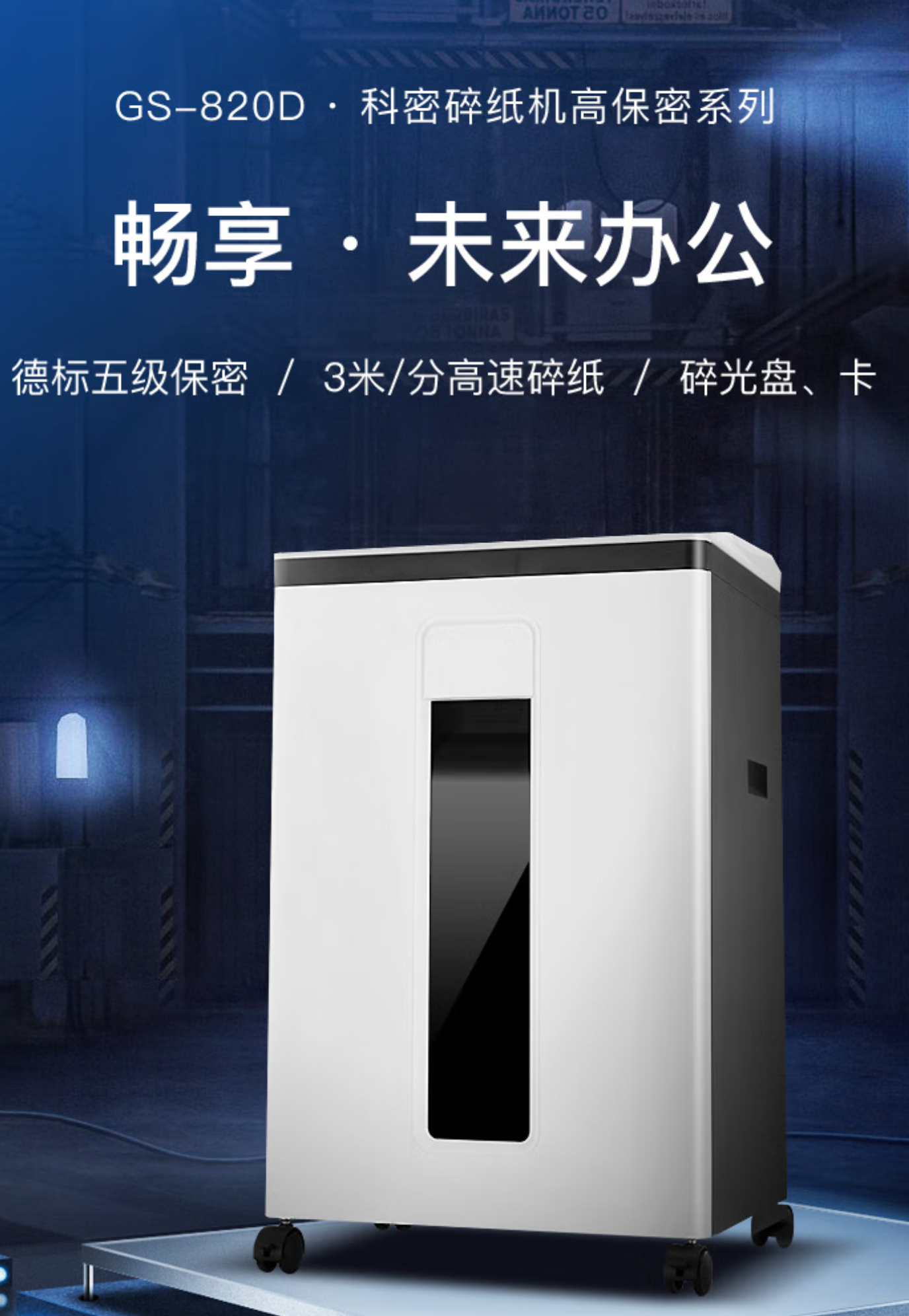 歌派GS-820D碎纸机 5级高保密粉碎 办公家用米粒效果 单次碎8张(A4) 连碎30分钟 22L容量 可碎卡碎光盘